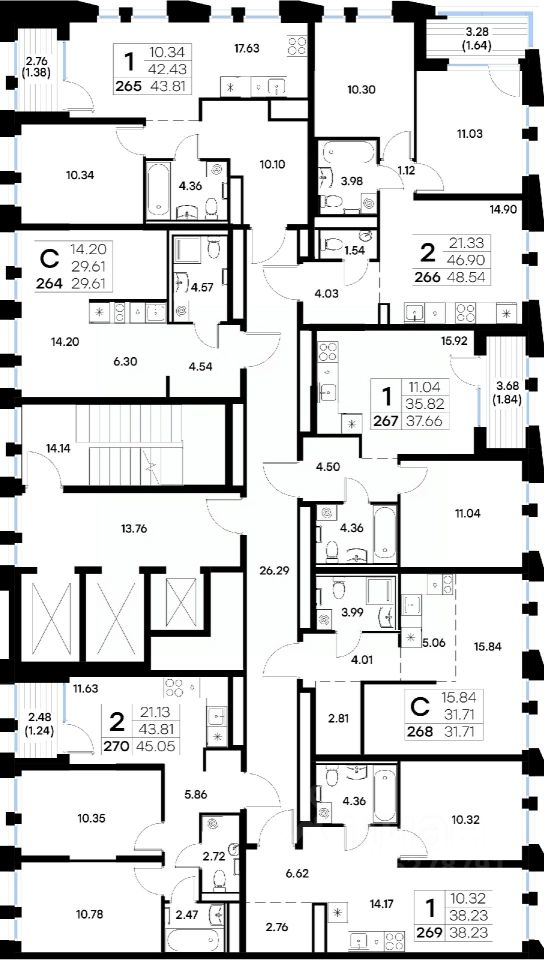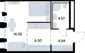 Продается квартира-студия на 3-м этаже в квартале бизнес-класса GloraX Урицкого. Общая площадь лота составляет 29,61 кв. м, из которых 14,20 кв. м отведено под жилую и 6,30 кв. м под кухонную зону. Номер квартиры - 264