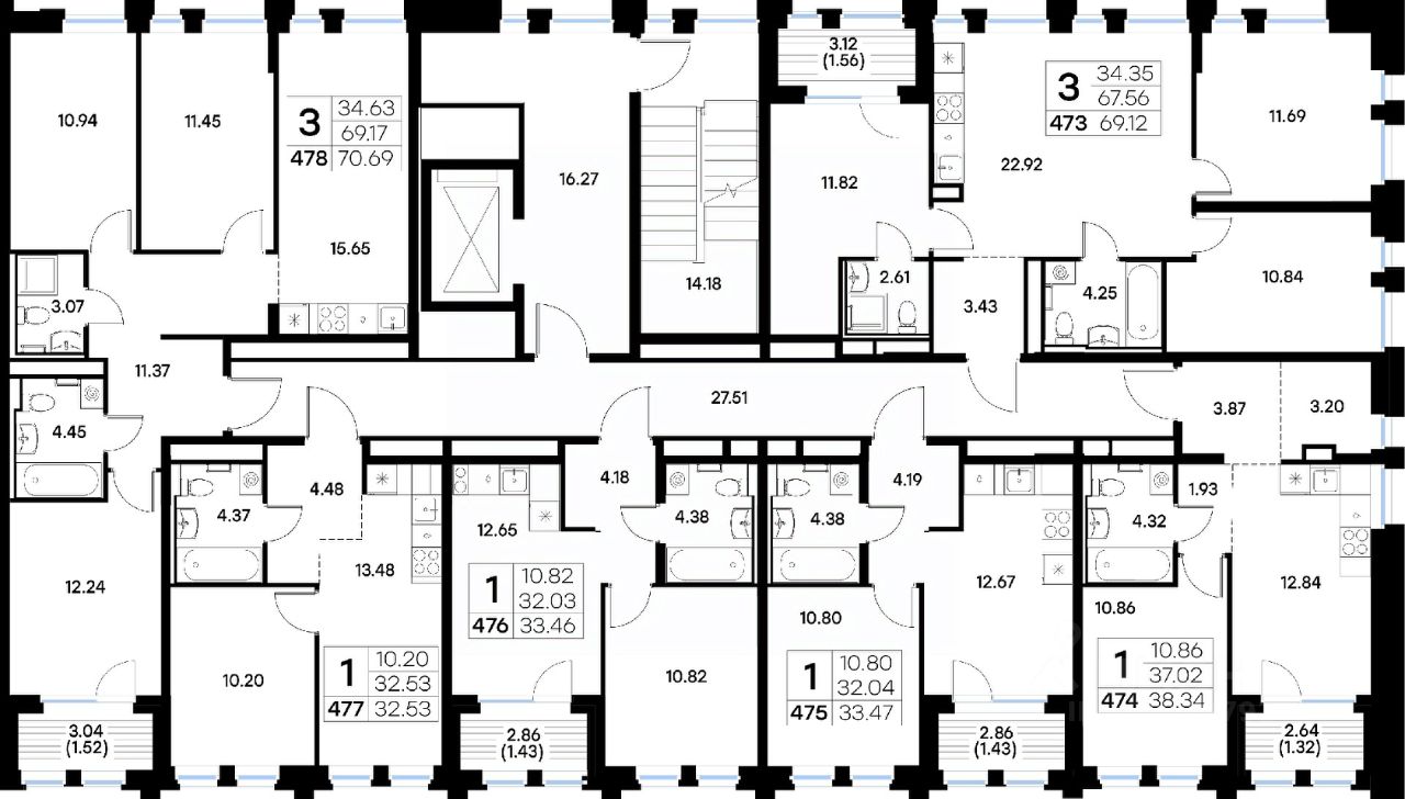 Продается 3-комн. квартира на 3-м этаже в квартале бизнес-класса GloraX Урицкого. Общая площадь лота составляет 70,69 кв. м, из которых 34,63 кв. м отведено под жилую и 15,65 кв. м под кухонную зону. Номер квартиры - 478