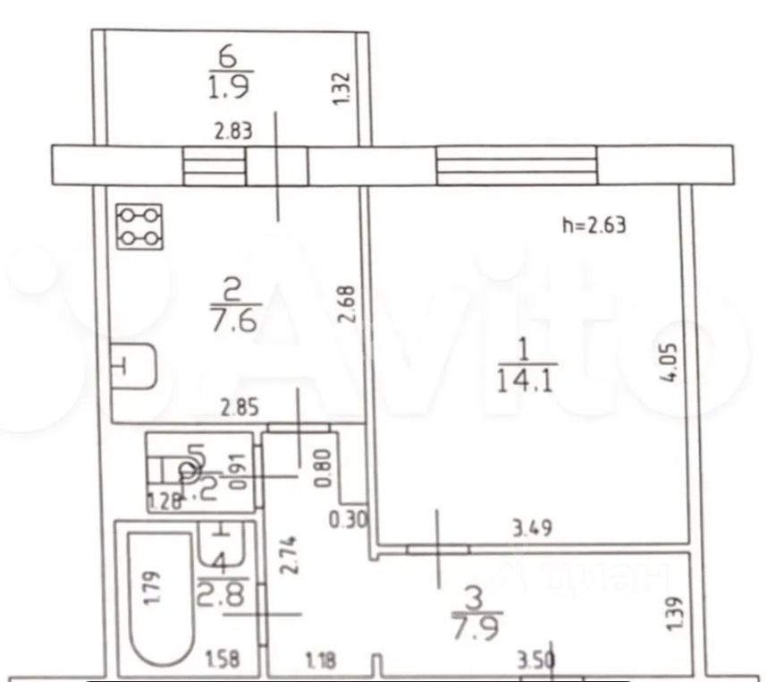 Жилая площадь 17 кв.м; Кухня 9 кв.м;