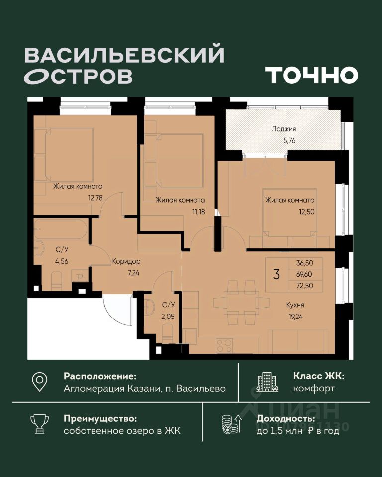 ЖК "Васильевский остров" — масштабный проект ТОЧНО в Казанской агломерации. Просторная территория 88 Га спроектирована для комфортной жизни: озеро с набережной и пляжем, каток, зелёные маршруты. В проекте комплекса — школа на 1 224 места, 2 детских сада на 680 мест, детская и взрослая поликлиники, фитнес-центр с бассейном, термальный комплекс, фермерский рынок, магазины, кафе и рестораны.