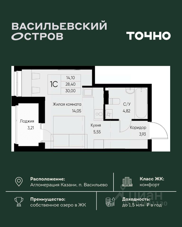 ЖК "Васильевский остров" — масштабный проект ТОЧНО в Казанской агломерации. Просторная территория 88 Га спроектирована для комфортной жизни: озеро с набережной и пляжем, каток, зелёные маршруты. В проекте комплекса — школа на 1 224 места, 2 детских сада на 680 мест, детская и взрослая поликлиники, фитнес-центр с бассейном, термальный комплекс, фермерский рынок, магазины, кафе и рестораны.