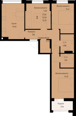 Общая площадь72,3 м²