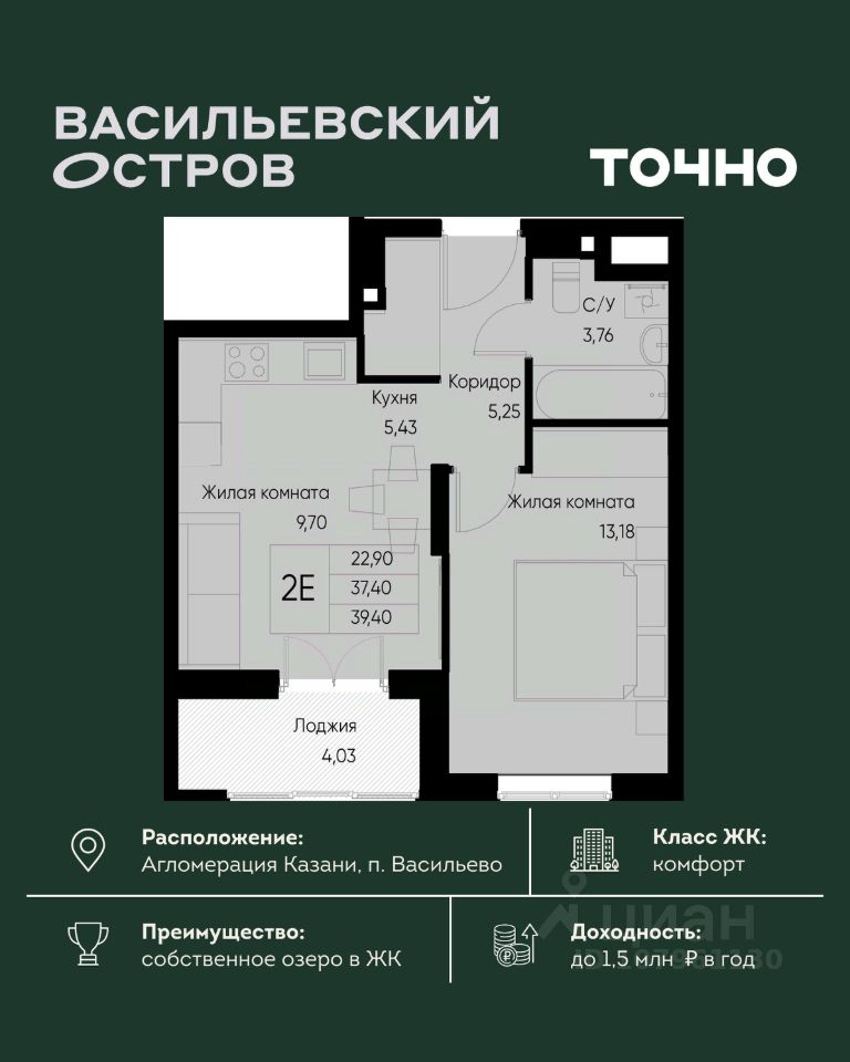 ЖК "Васильевский остров" — масштабный проект ТОЧНО в Казанской агломерации. Просторная территория 88 Га спроектирована для комфортной жизни: озеро с набережной и пляжем, каток, зелёные маршруты. В проекте комплекса — школа на 1 224 места, 2 детских сада на 680 мест, детская и взрослая поликлиники, фитнес-центр с бассейном, термальный комплекс, фермерский рынок, магазины, кафе и рестораны.