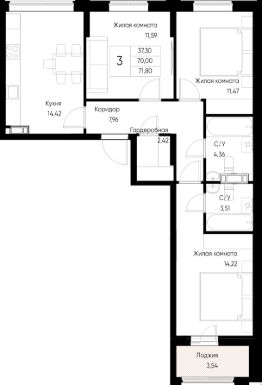 Общая площадь71,8 м²