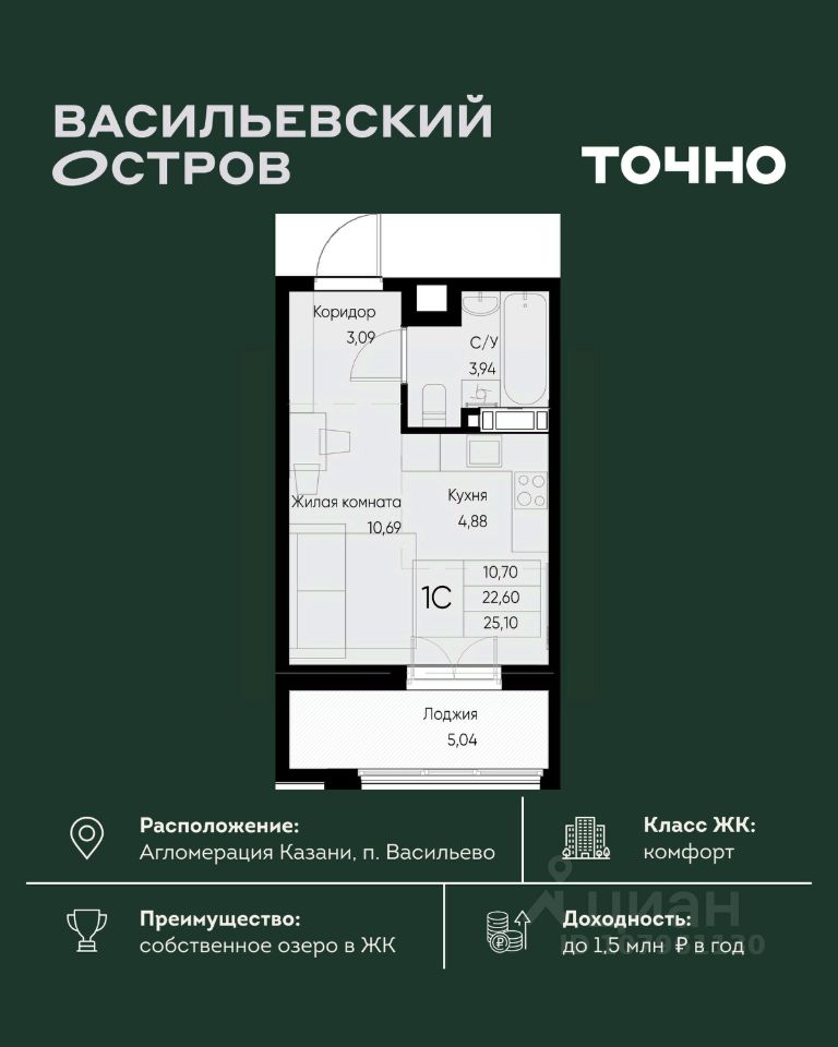 ЖК "Васильевский остров" — масштабный проект ТОЧНО в Казанской агломерации. Просторная территория 88 Га спроектирована для комфортной жизни: озеро с набережной и пляжем, каток, зелёные маршруты. В проекте комплекса — школа на 1 224 места, 2 детских сада на 680 мест, детская и взрослая поликлиники, фитнес-центр с бассейном, термальный комплекс, фермерский рынок, магазины, кафе и рестораны.