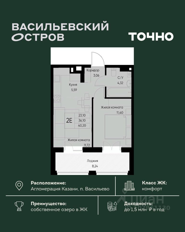 ЖК "Васильевский остров" — масштабный проект ТОЧНО в Казанской агломерации. Просторная территория 88 Га спроектирована для комфортной жизни: озеро с набережной и пляжем, каток, зелёные маршруты. В проекте комплекса — школа на 1 224 места, 2 детских сада на 680 мест, детская и взрослая поликлиники, фитнес-центр с бассейном, термальный комплекс, фермерский рынок, магазины, кафе и рестораны.