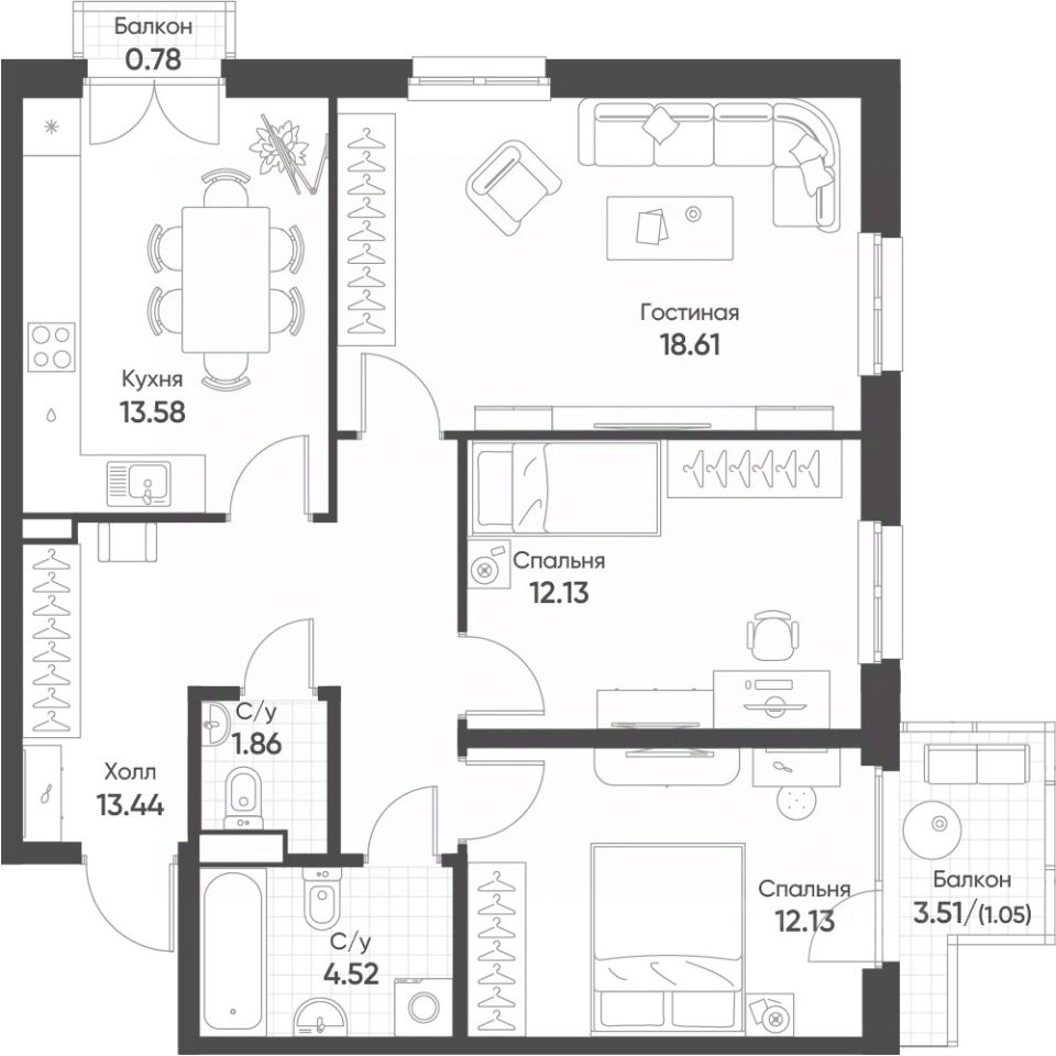 Продаётся 3-комнатная квартира в строящемся доме (Дом 2 Секция 2), срок сдачи: I-кв. 2026, общей площадью 77.55 кв.м., на 4 этаже. Строящийся комплекс будет состоять из 4 домов, включающих в себя продуманные планировки с европейским подходом к организации пространств: минимум неиспользуемой площади, максимум функционала.