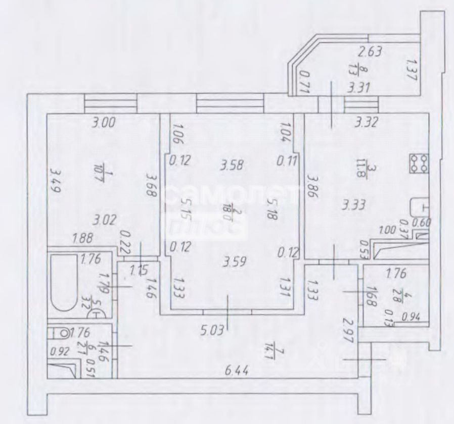 62,7 кв.м, 14/18 этаж, монолитно-кирпичный дом;