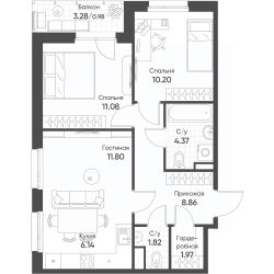 3-комн. от 57,22 м²