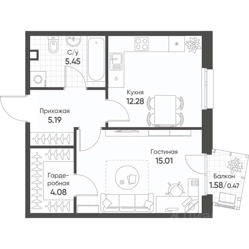 Продаётся 1-комнатная квартира в строящемся доме (Корпус 4), срок сдачи: IV-кв. 2025, общей площадью 42.48 кв.м., на 2 этаже. Новый жилой комплекс "Счастье" от застройщика "Группа Эталон" расположен по адресу город Казань, улица Гаврилова.