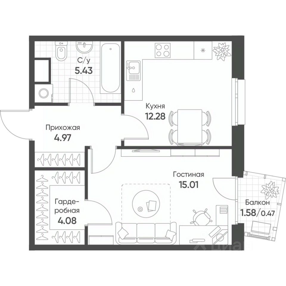 Продаётся 1-комнатная квартира в строящемся доме (Корпус 4), срок сдачи: IV-кв. 2025, общей площадью 42.24 кв.м., на 6 этаже. Новый жилой комплекс "Счастье" от застройщика "Группа Эталон" расположен по адресу город Казань, улица Гаврилова.