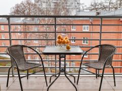 •Уютный балкон — идеальное место для утреннего кофе или вечернего отдыха.