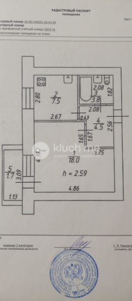 Общая площадь - 33.8 м2. Жилая - 16м2, кухня -8 м2.