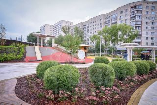 Дом находится в хорошем состоянии, с ухоженной территорией и наземной парковкой для жильцов. Вокруг дома много зелени, что создает атмосферу уюта и спокойствия. В шаговой доступности находятся школы, детские сады, клиники и магазины, что делает этот район удобным для семей с детьми.