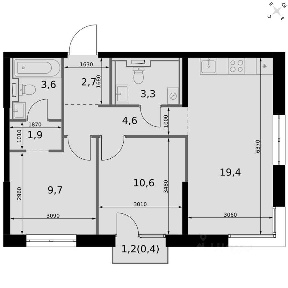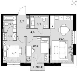 Продаётся 2-к квартира номер 3 общей площадью 56.2 кв.м. на 3-м этаже 20 этажного здания. Отделка Whitebox. Цена с учётом скидки.