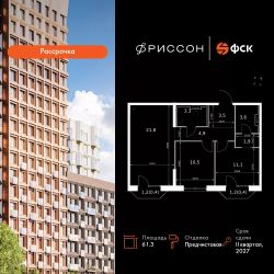 Продаётся 2-к квартира номер 20 общей площадью 61.3 кв.м. на 5-м этаже 20 этажного здания. Отделка Whitebox. Цена с учётом скидки.