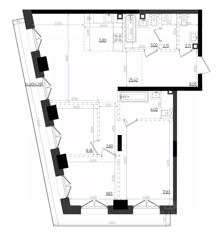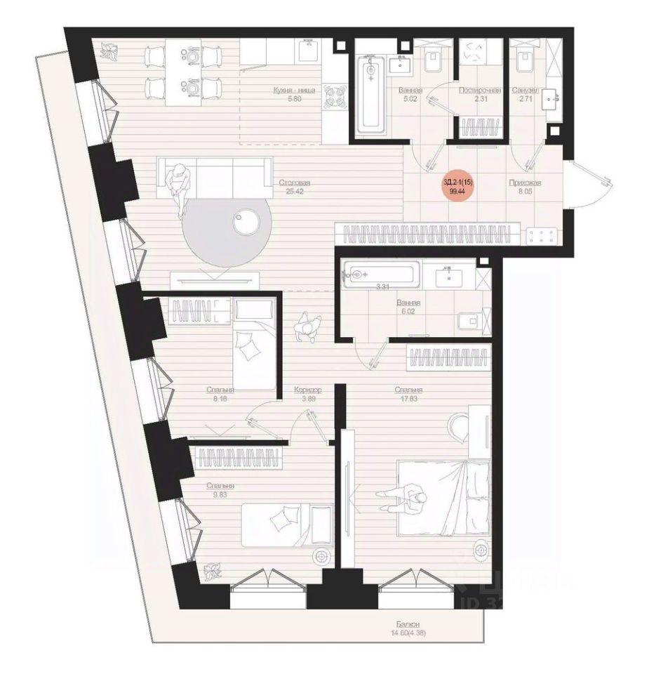 Общая площадь99,44 м²