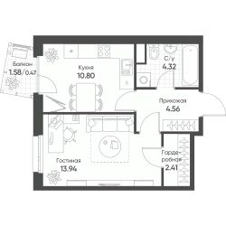 1-комн. от 36,25 м²