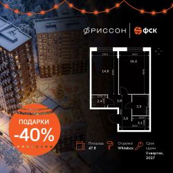 Продаётся 1-к квартира номер 309 общей площадью 47.8 кв.м. на 6-м этаже 8 этажного здания. Отделка Whitebox. Цена с учётом скидки.