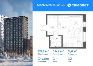 Строим кварталы для жизни с заботой о будущем. Предлагается квартира студия комфорт-класса 28,06 кв.м в корпусе 1 на 10 этаже, в MANZARA TOWERS
