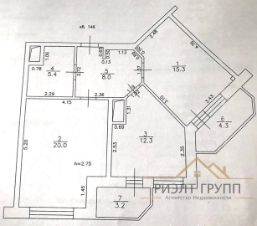 Общая площадь 68,5 м², жилая 35,3 м², кухня 12,3 м²