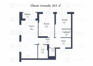 Общая площадь без понижающего коэффицииента - 61,8 м2.