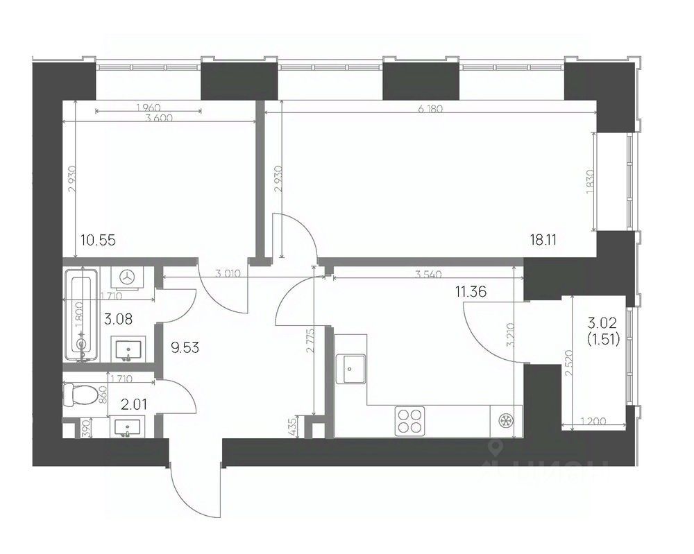 Общая площадь56,15 м²