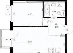 Площадь квартиры 37 кв.м., кухня гостинная - 17 кв.м.