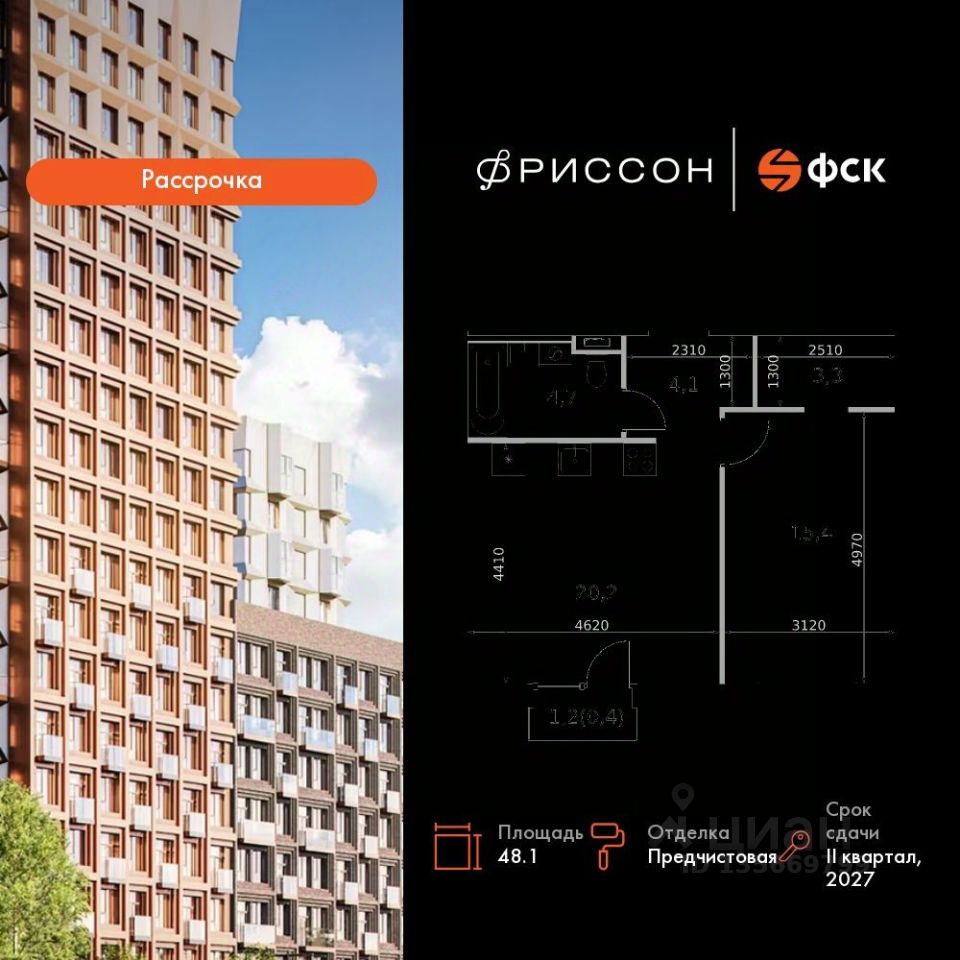 Продаётся 2-к квартира номер 345 общей площадью 48.1 кв.м. на 5-м этаже 14 этажного здания. Отделка Whitebox. Цена с учётом скидки.