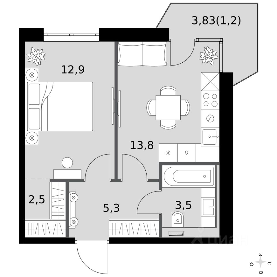 - Большой балкон - больше пространства для вашего отдыха.