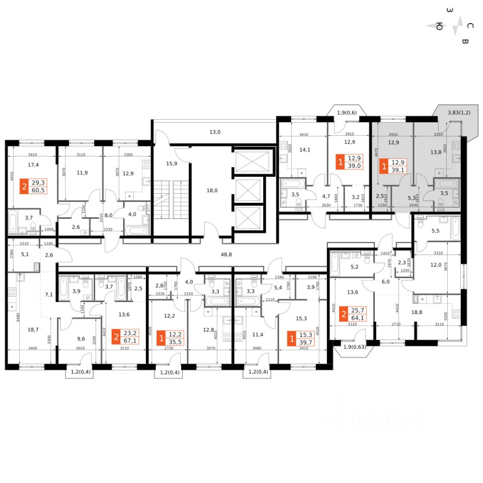 Продаётся 1-к квартира номер 201 общей площадью 39.1 кв.м. на 7-м этаже 19 этажного здания. Отделка Whitebox. Цена с учётом скидки.
