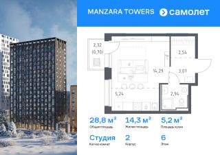 Строим кварталы для жизни с заботой о будущем. Предлагается квартира студия комфорт-класса 28,78 кв.м в корпусе 2 на 6 этаже, в MANZARA TOWERS