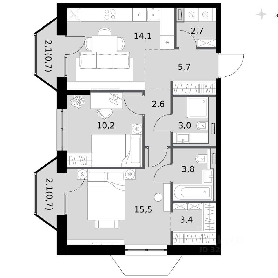 - Мастер-зона с санузлом и гардеробной. Всё для вашего комфорта и удобства, включая личный санузел и гардероб.