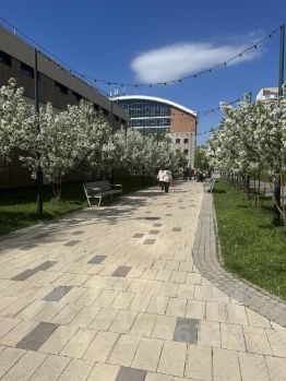 Перед домом расположен парк Белые цветы и в пешей доступности парк Стамбул и Парк Победы. Автобусная остановка Абсалямова в 4 минутах ходьбы, до метро Козья слобода 12 минут пешком. Во дворе расположено несколько садиков, вблизи школы, гимназии и лицеи.