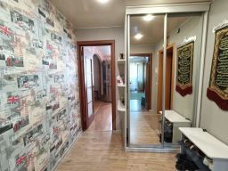 Ламинат, современные обои, натяжные потолки, пластиковые окна, раздельный санузел в кафеле, застеклённый балкон с двумя просторными шкафами-купе, новые радиаторы, поменяна проводка.