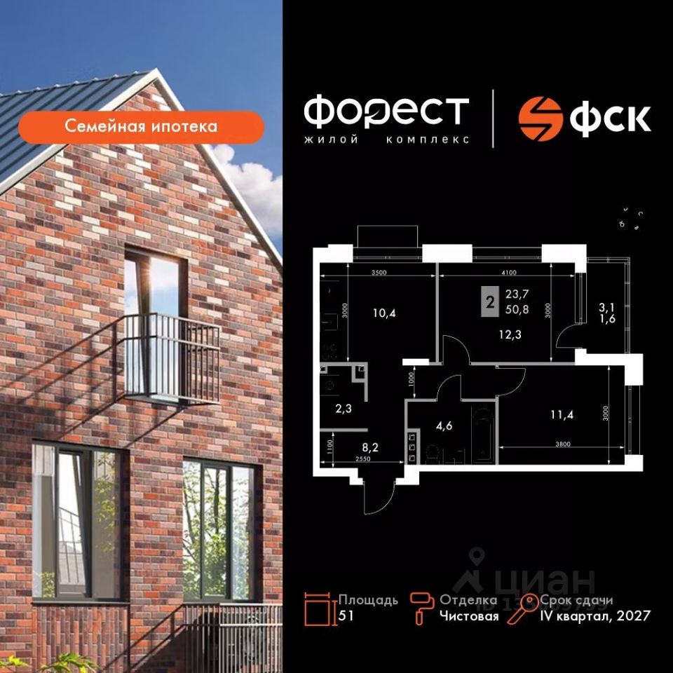 Продаётся 2-к квартира номер 6 общей площадью 51 кв.м. на 2-м этаже 7 этажного здания. Чистовая отделка. Цена с учётом скидки.