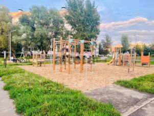Во дворе дома благоустроена детская площадка и много парковочных мест.