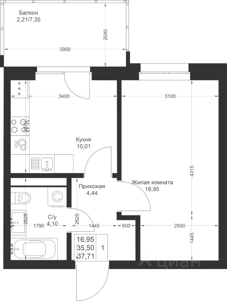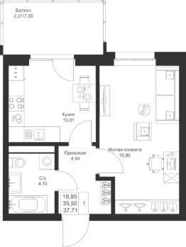Уютная 1-комнатная квартира с отдельной кухней и выходом на балкон. Здесь можно организовать рабочее место или дополнительное пространство для отдыха.