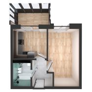Площадь комнаты позволяет зонировать ее на спальную и гостевую зоны. В проекте функциональная прихожая, чтобы вам было удобно хранить свои вещи.