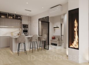 В кухне-гостиной установлен электрокамин с подсветкой с функцией пара, который создаёт особый уют и тепло.