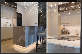 Ремонт выполнен по дизайн проекту с авторским и техническим сопровождением, с использованием дорогих импортных материалов. Напольное покрытие — инженерная доска, потолки из гипсокартона, в санузлах крупноформатный керамогранит от испанских производителей, стол остров со встроенной вытяжкой и подсветкой, приточная вентиляция, умная подсветка в санузле, встроенная аудиосистема, шторы с электрокарнизами, теплый пол и теплая стена в санузлах, вся мебель изготовлена на заказ (по запросу пришлю ссылку на статью на сайте дизайн бюро о нашем ремонте, где всё подробно описано).
