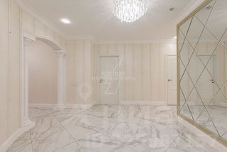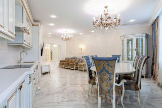 Дизайнерский ремонт в стиле современная классика выполнен с использованием дорогих и экологически чистых материалов. Вся мебель из дерева, кухонные фасады итальянские с золотой патиной. Все продумано до мелочей, эта квартира для истинных ценителей красоты, качества и комфорта. Дорогая и качественная шумоизоляция по периметру всей квартиры, межкомнатные стены из кирпича (толщина стен 150 мм), двери из массива с патиной, итальянский керамогранит, брендовая сантехника, элементы декора из дорогих натуральных материалов, телевизоры во всех комнатах ( LG).