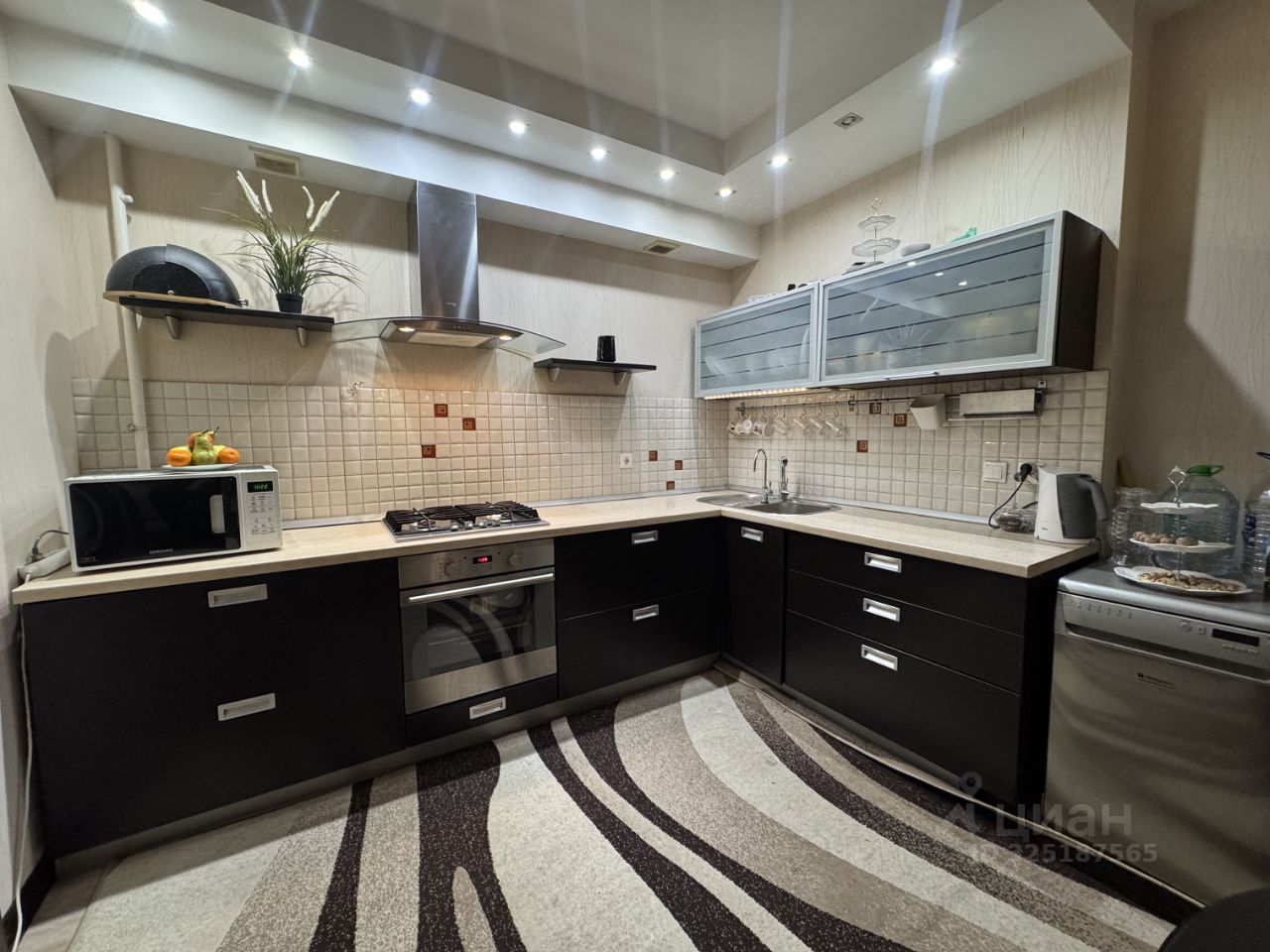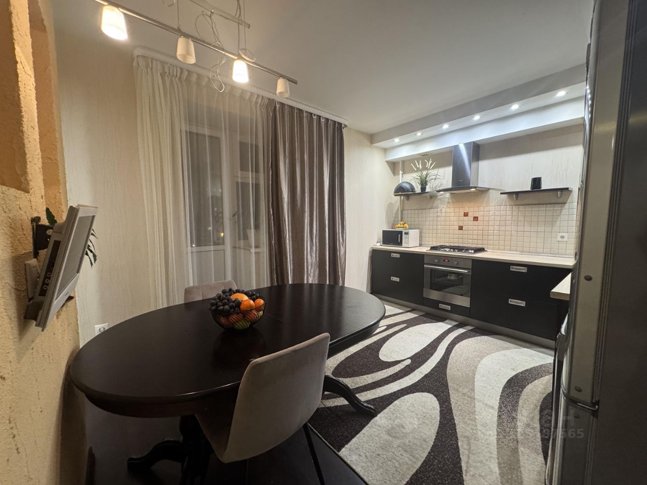 • Мебель: гарнитур на кухне, стол и 4 табуретки, шкаф в спальне, кровать, 2 тумбы, раскладной диван в гостиной (спальное место 150 на 200 см), тумбы под ТВ, шкаф в прихожей.