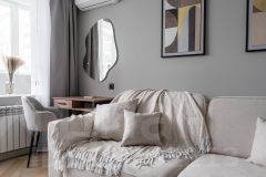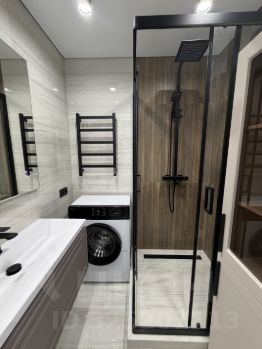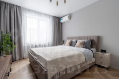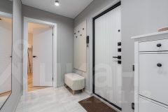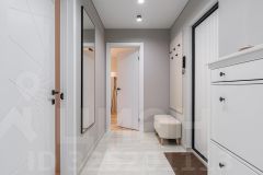 На полу в прихожей, кухни, балконе и санузлах широкоформатный керамогранит 60*120. В комнатах кварцвинил уложенный елочкой. На полу везде где керамогранит уложен электрический теплый пол. Двери дорогие и качественные (эмаль). В обеих комнатах имеется кондиционеры.
