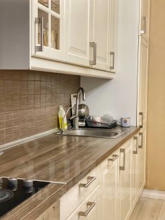 - Большая кухня 17 м2, кухонный гарнитур в светлых тонах и полностью со встроенной техникой, имеется фильтр для воды, из кухни имеется выход на первый балкон