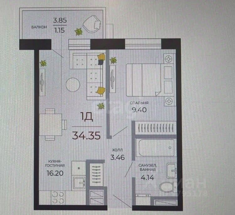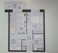 Квартира евро формата (изолированная комната и просторная кухня-гостиная). Общая площадь квартиры 33 кв.м., кухня-гостиная 16,2 кв.м., комната 9,4 кв.м. Сан/узел совмещенный в современном кафеле.
