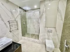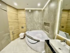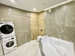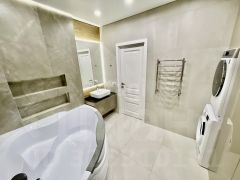- Гостевой санузел с инсталляцией с гигиеническим душем, теплым полом, большой угловой ванной, стиральной и сушильной машиной, установлен водонагреватель;