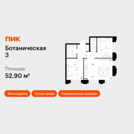 Продаётся 2-комн. квартира площадью 52,9 кв.м на 4 этаже 8 этажного дома (Корпус 1, Секция 2) проекта ПИК Ботаническая 3. Светлый просторный подъезд на уровне земли, функциональная планировка, большие окна, без отделки.