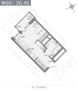 Студия, 26,4 м²