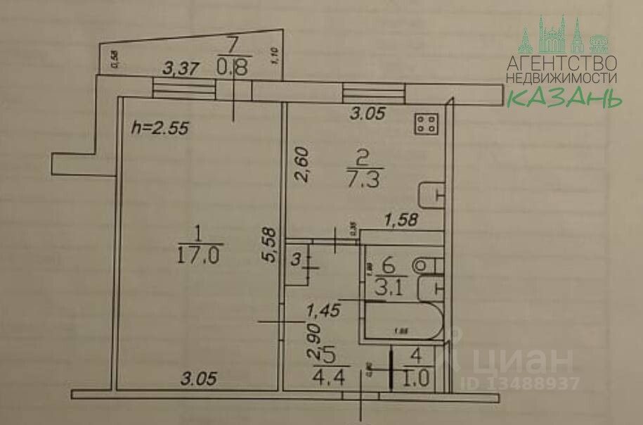 • Функциональная кухня: Удобная кухня площадью 7.3 м² с легкостью вместит всю необходимую мебель и технику, где приготовление пищи будет в удовольствие.